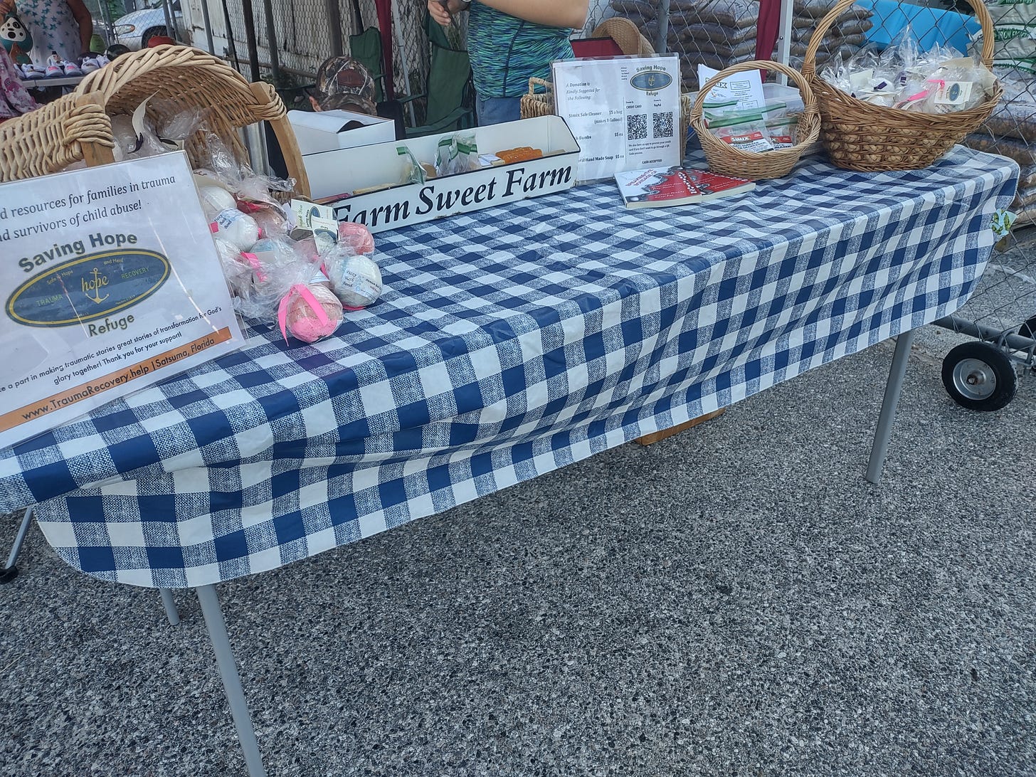 2024 has a shifted focus. The Farmer’s Market we had been attending in 2023, changed its format, so that is not a regular presence to the community. However, when we were able to go on a monthly basis, we were able to pray for many and give out the Gospel and materials for trauma survivors, including the “Breaking the Bondage” by Evangelist Mike Keller.
