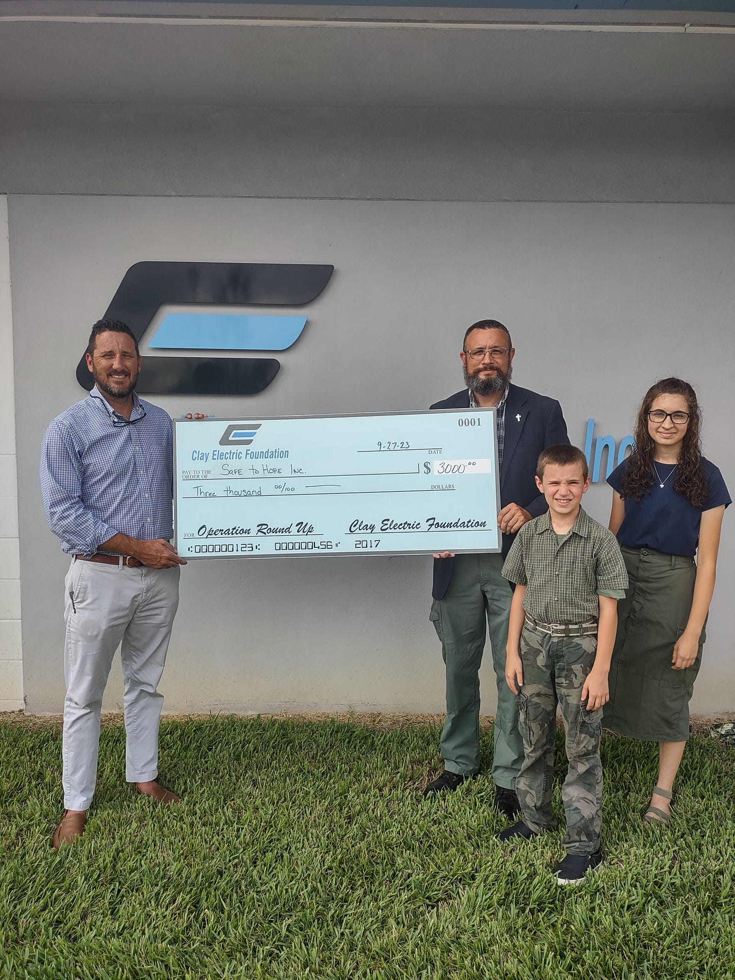 In 2023, a grant was received from Clay Electric, and a check of $3,000 was received to God’s glory, for the purchase of materials and marketing supplies for survivors and to give to the community.